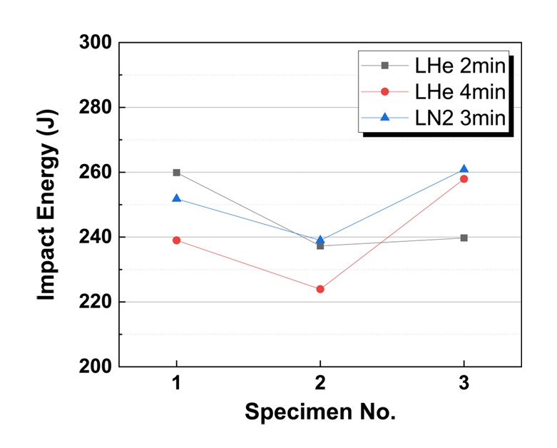 ์คํ ์ ์ฐจ๋ฅผ ๊ฐ๋ฐํ์๋ค. ์ด๋ฅผ ํตํด 77K ํ์ค ์ํ๋๋น 4K ์ด์ ์จ์์์ ์ถฉ๊ฒฉ ์ธ์ฑ ๋ณํ๋ฅผ ํ์ธํ๊ณ , ์ก์ฒด ํฌ๋ฅจ์ ์ด์ฉํ ์ถฉ๊ฒฉ ์ํ ๋ฐฉ๋ฒ์ ๋๊ฐ