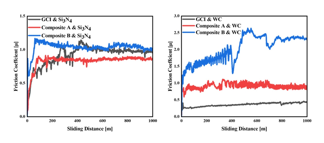 for Composite B, which exhibited unique characteristics, including elevated friction