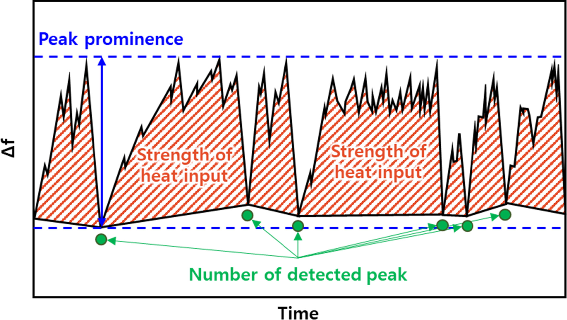 waveform analysis. (Peak prominence, number of detected peak, strength of heat input)