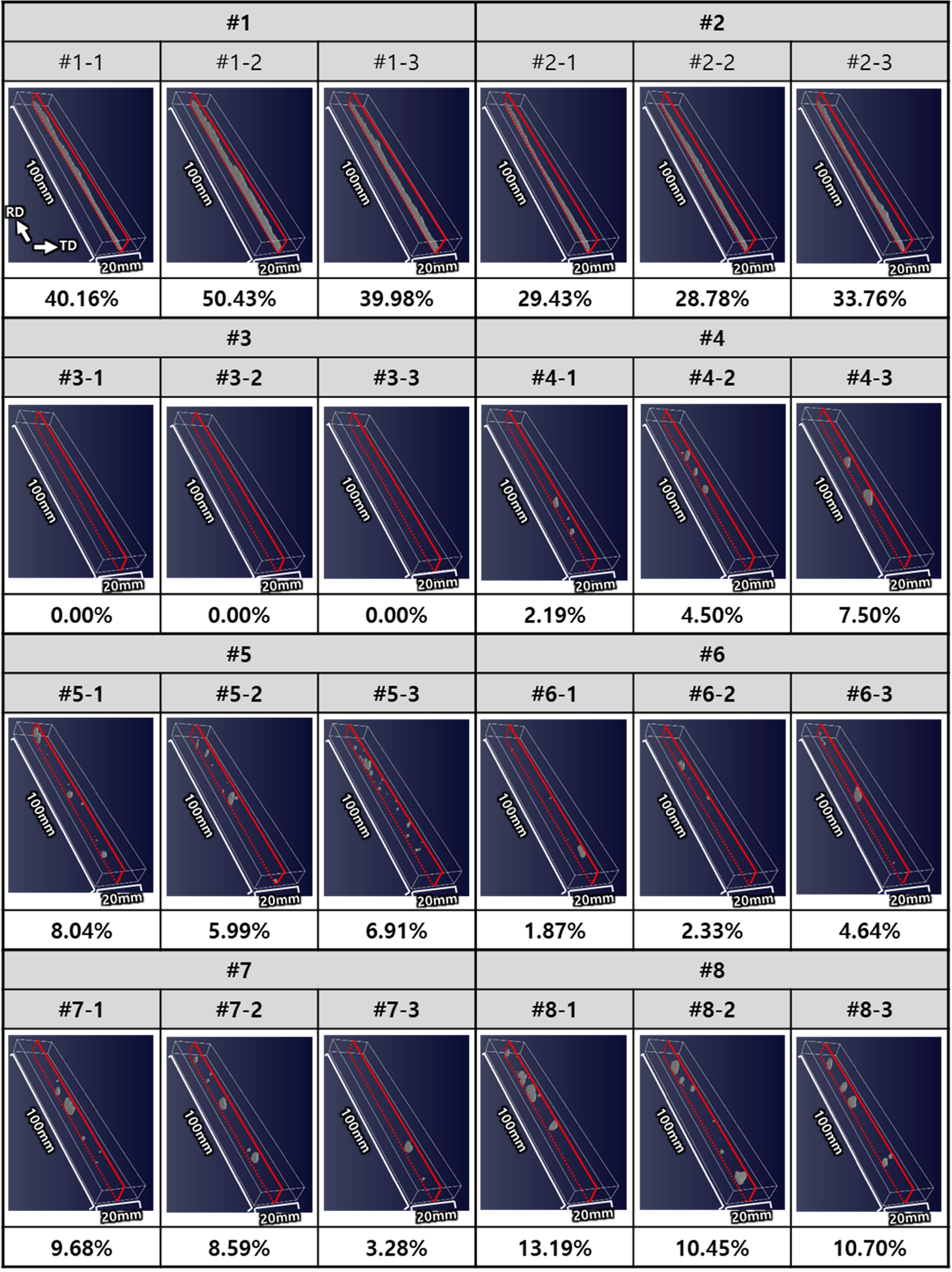 충족했다. 시험이 종료된 샘플의 균열 발생 여부는 시험 전/후 각 조건 별 3개의 시편을 3차원 C-scan 결함 검출기 (NAWOO, 3D C-scan