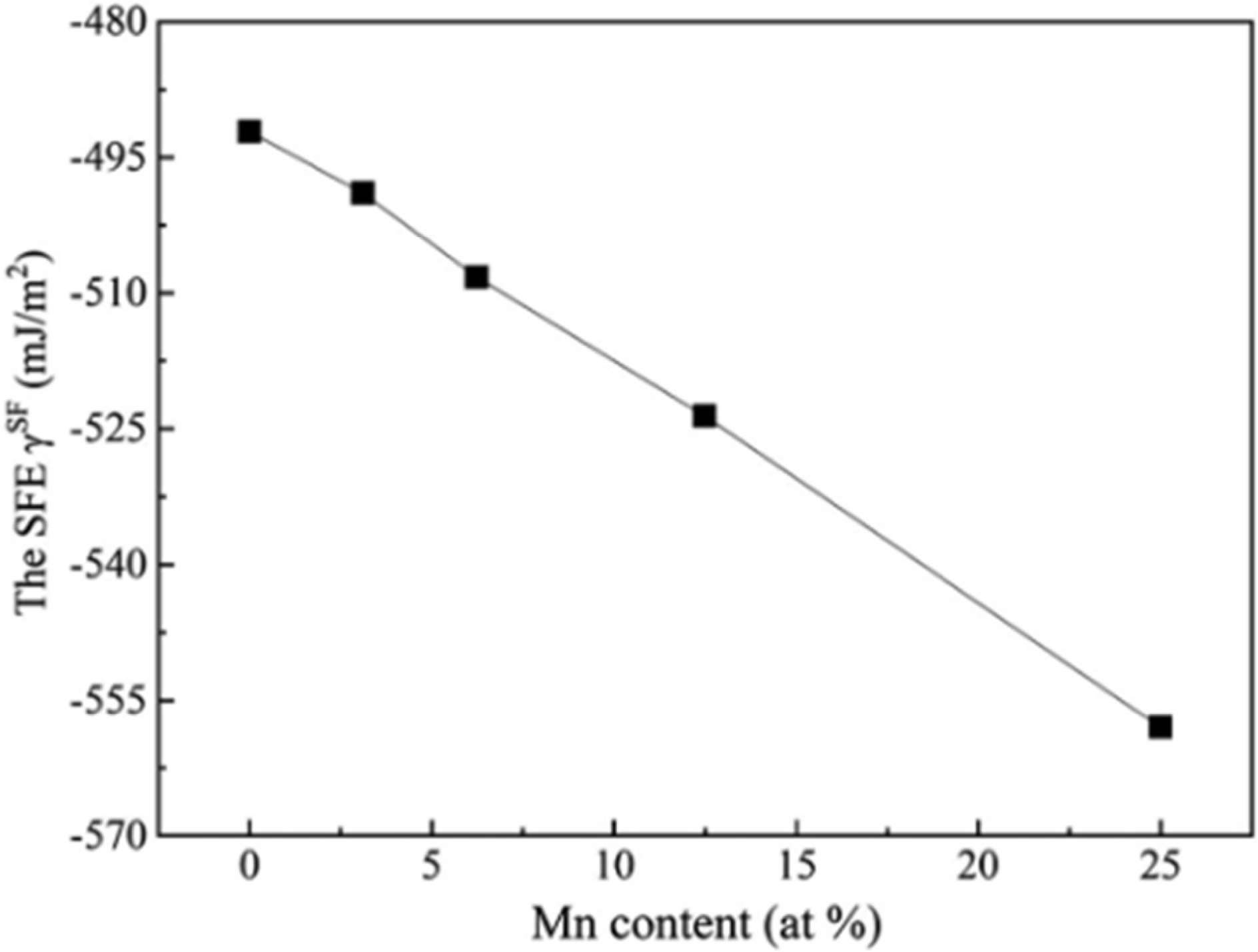 Fig. 1. The SFE of alloys with different Mn contents[12].