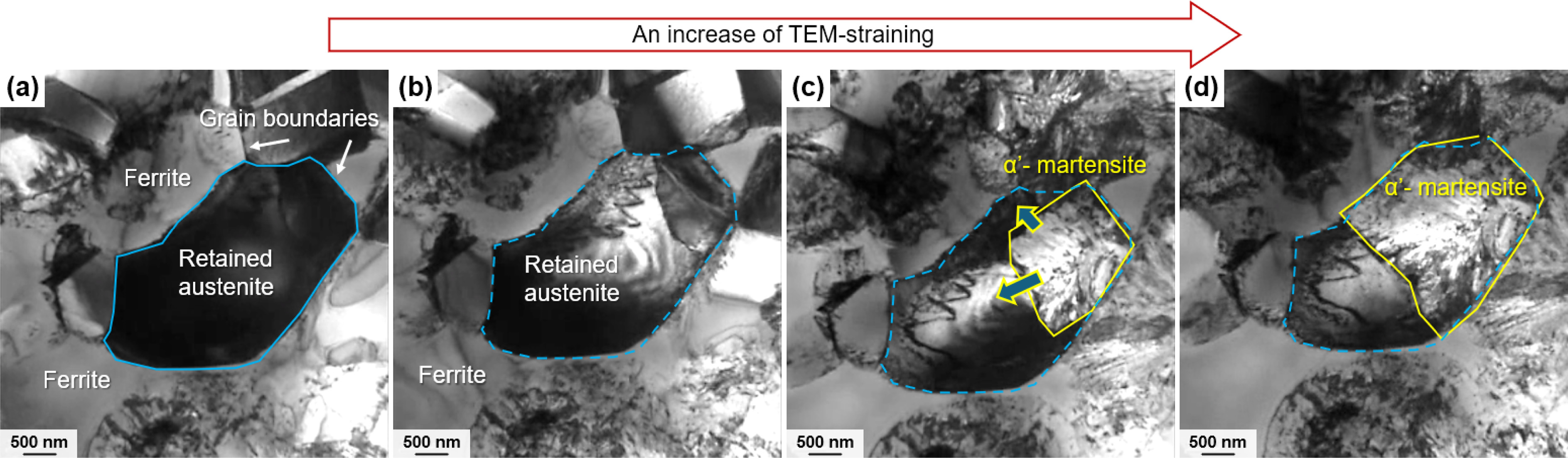 strengthening mechanism under the TRIP mechanism. (a) Schematic drawing explaining