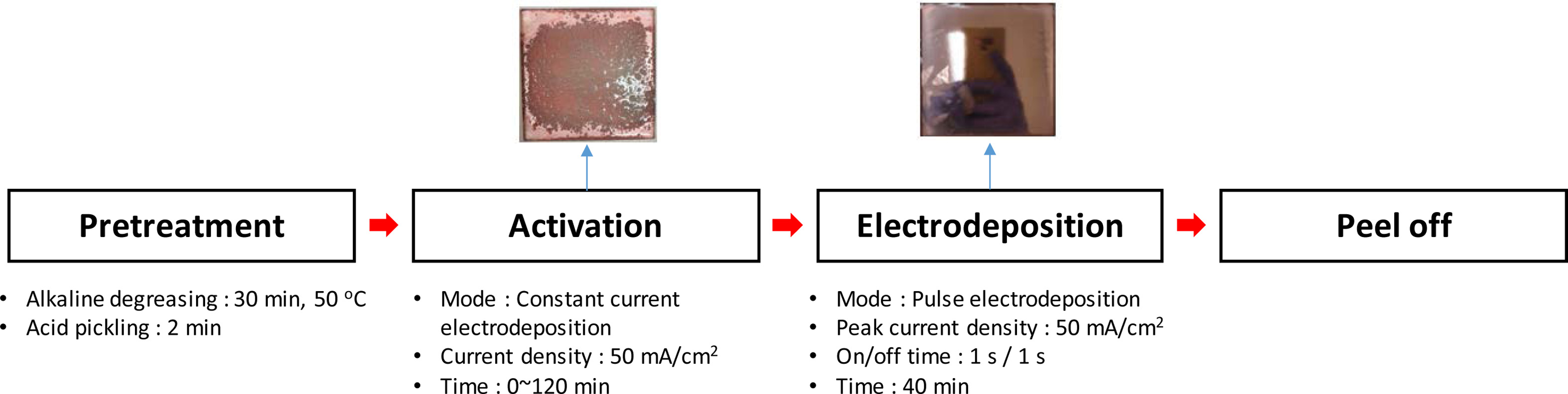 and activated baths (current density for activation: 25, 50, 75, and 100 mA/cm2).