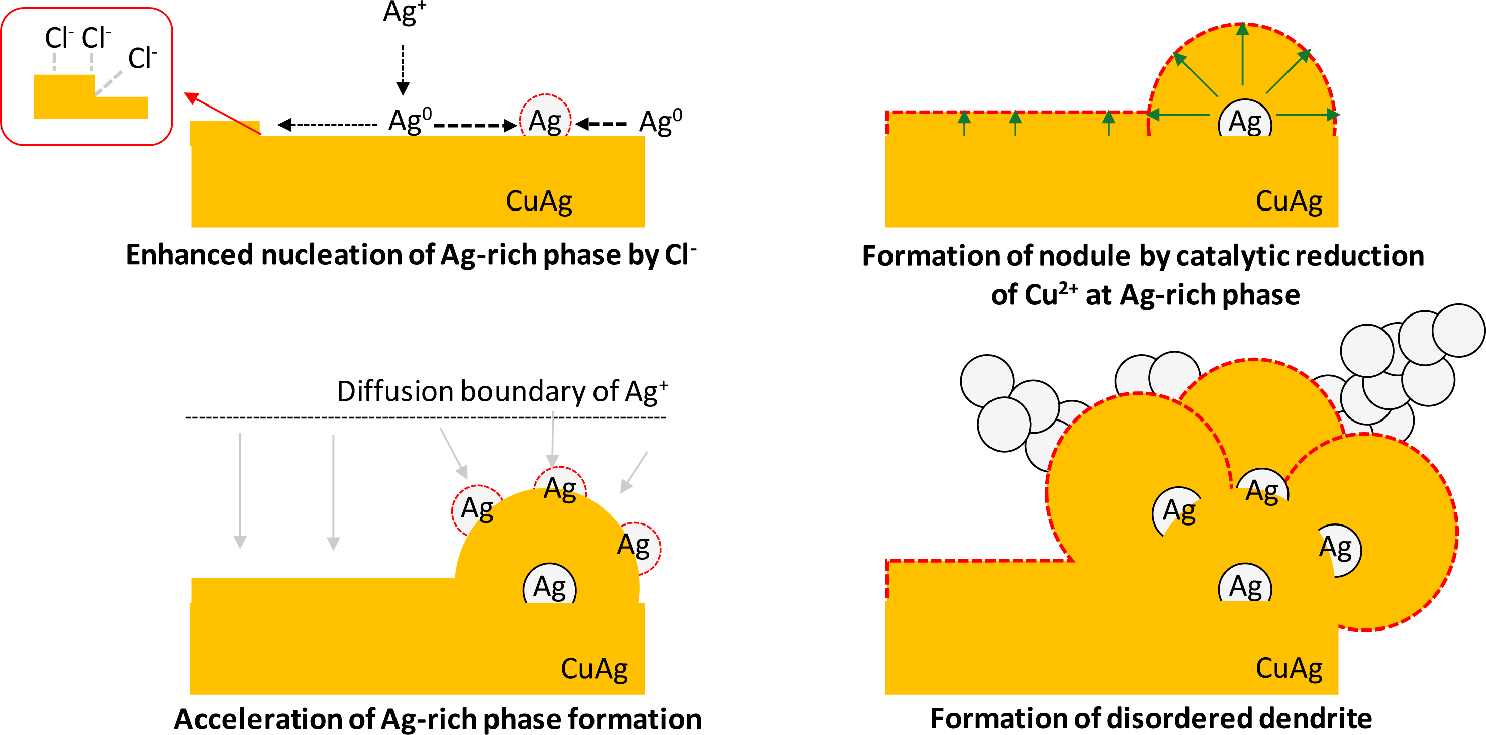on a chloride-covered Cu-rich phase, followed by the nucleation of an Ag-rich phase.
