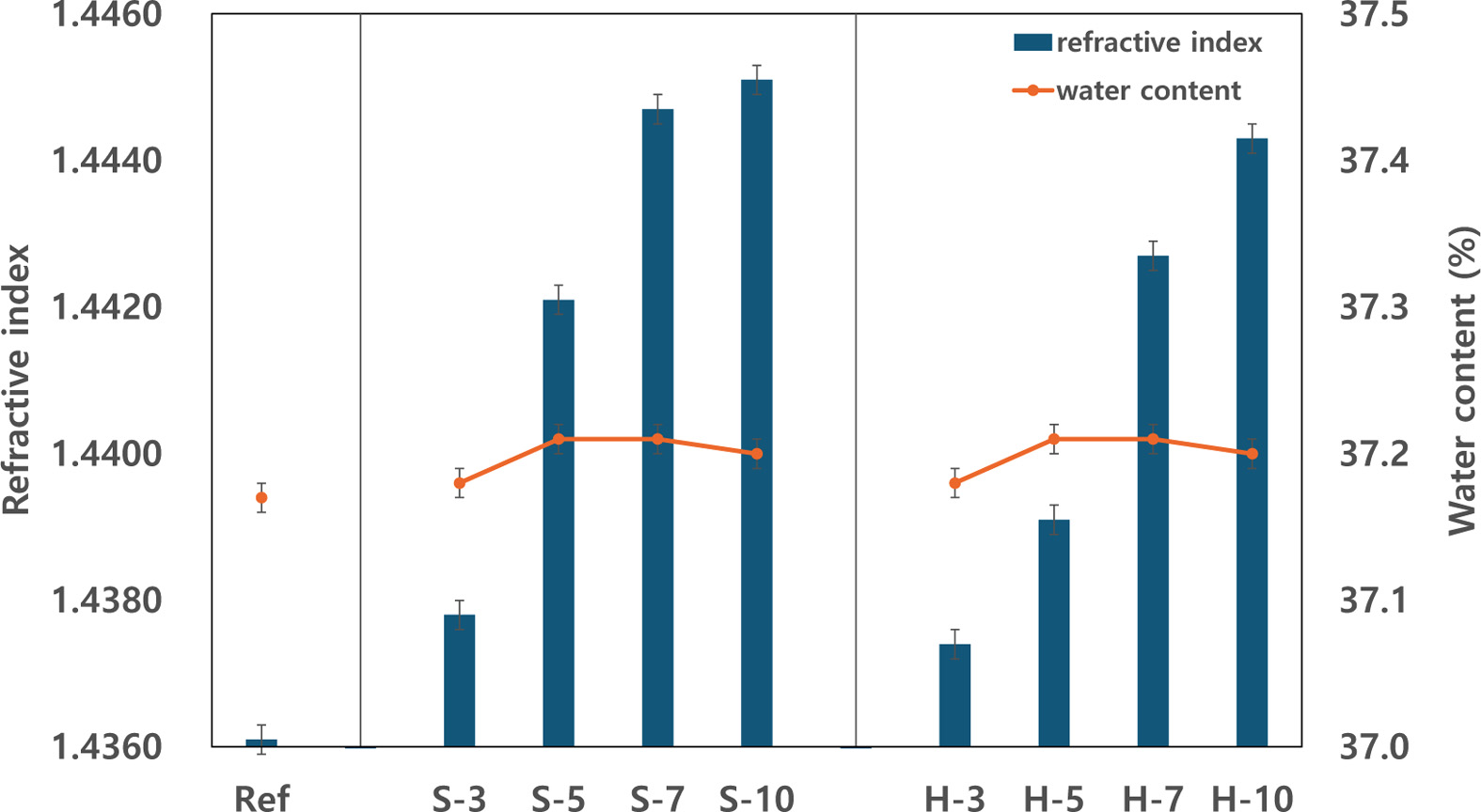 Relative to Ref, the tensile strength of the fabricated lenses increased monotonically