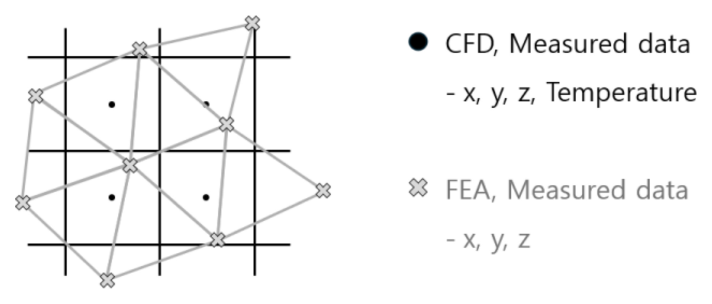 얻어진 셀 중심 온도 데이터를 FEA 격자에 직접 적용하기에는 좌표계·격자 구조의 차이로 인해 정보 왜곡이 발생할 수 있다. 이에 FEA 노드를 포함하고