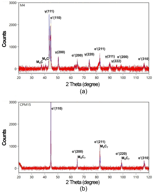 ๊ณต๊ธ๋๊ณผ ๊ฐ์ ๊ณต์ ์กฐ๊ฑด์ ๋ฐ๋ผ ๋ฏธ์ธํ ์ฐจ์ด๋ฅผ ๋ํ๋ด๊ธฐ๋ ํ๋ค [13,14]. ๋ํ, ๊ธ์ ๋ถ๋ง์ ํํ์ ์กฐ์ฑ๋ ์ํฌ ํ์์ ์ํฅ์ ๋ฏธ์น๊ฒ ๋๋๋ฐ, ๋ณธ ์ฐ๊ตฌ์์ ์ฌ์ฉ๋ CPM15V๋ M4๋ณด๋ค ๋์ ํ์ํจ์ ๋์ ๊ฐ์ง๊ณ ์์ผ๋ฉฐ,