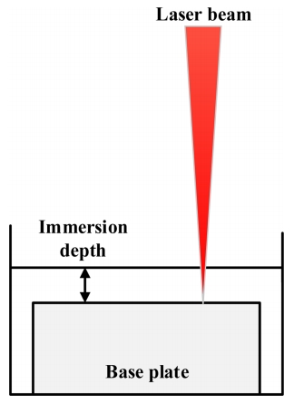 굴절 정도는 매질의 밀도에 의존적이며, 빔의 굴절 정도에 따라 빔의 직경이 변하여 용융 영역의 폭과 침투 깊이가 달라진다. 그림 7 (b)는 질산 용액 속에서의 빔 굴절율을 나타낸 도식도이며, 물보다 밀도가 높은 질산 용액에서는 입사각보다 굴절각이 감소하여 굴절율 증가로 인해 조사되는