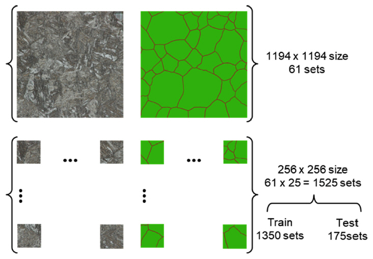 총 61세트를 구성하였다. 각 세트의 이미지는 마르텐사이트 래스와 packets이 다수 분포하고 있어 이를 분할하여 사용할 수 있을 것으로 판단하고
