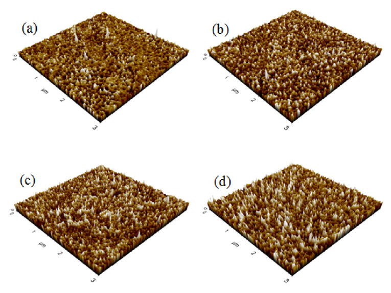 (RMS) 거칠기는 원자간력현미경(Atomic Force Microscope, XE-100, Park Systems)을 이용하여 비접촉모드로 3 ×