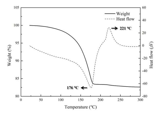 강한 발열 피크가 생성되었다. 176 °C의 흡열 피크는 페이스트를 제조하기 위해 첨가한 에틸렌글리콜의 증발에 의한 것으로 이를 통해 페이스트의 급격한