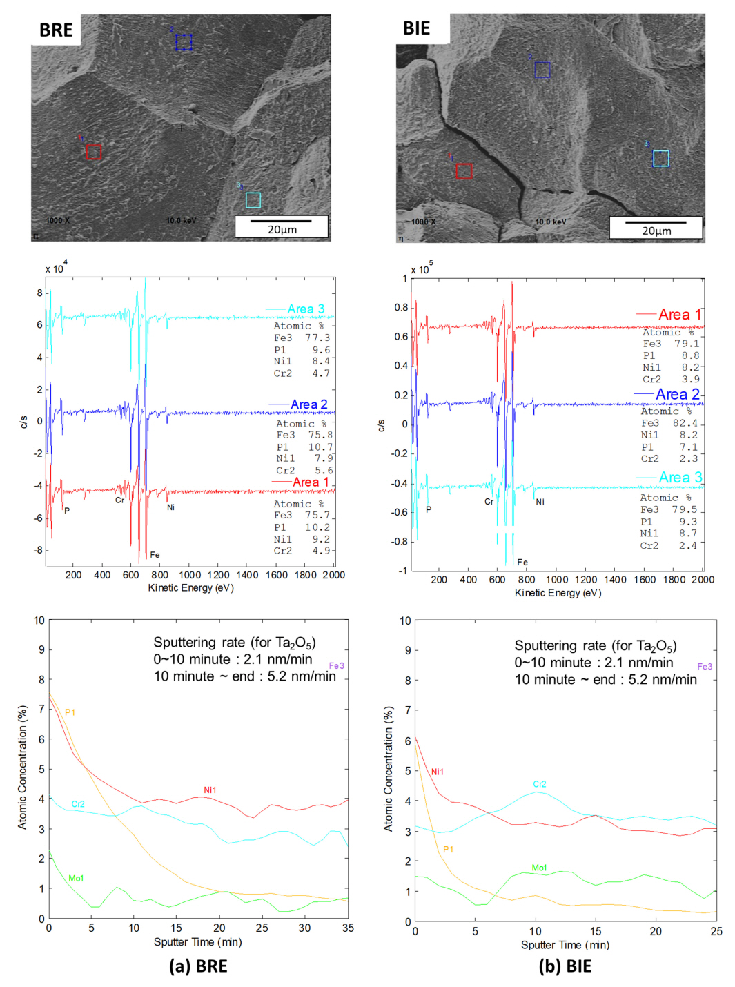 거동에 미치는 영향을 평가하였다. 미세조직과 결정립계 분석을 통해 결정립계 특성변화가 템퍼취화에 미치는 영향을 분석하였다.