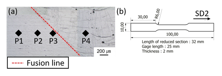 ์ฌ๋ฃ๋๋ค. ๊ทธ๋ฆผ 3์์ ์ํธํ ๊ณ๋ฉด์ ํ์ฑํ 150 W์์ ์ ์๋ ์ํธ์ ๊ฒฝ์ฐ 23.2%์ ์ฐ์ ์จ์ ๋ํ๋ด๋ฉฐ ๋ชจ์ฌ๋ณด๋ค ์ฝ๊ฐ ๋์ 996.8 MPa์ ์ธ์ฅ๊ฐ๋๋ฅผ ๋ํ๋ด์ด