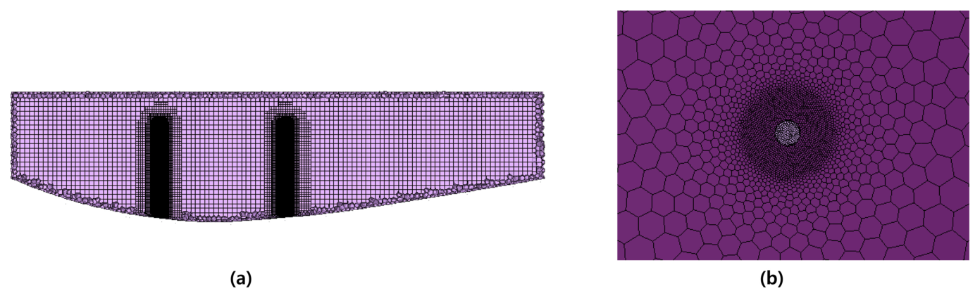 Meshing을 통해 격자를 생성하였다. 전체 격자 수는 약 2.5 million이며, Mosaic Mesh(Poly Hexcore Type) 격자를