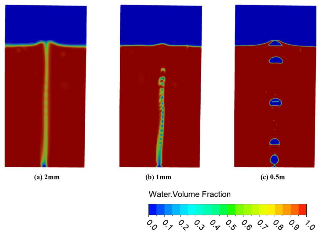해석 초기 수치적 안정성을 위해 1e-4 s로 설정하였으며, 기포가 발생하고 유동장이 충분히 형성될 수 있도록 해석을 진행하였다.