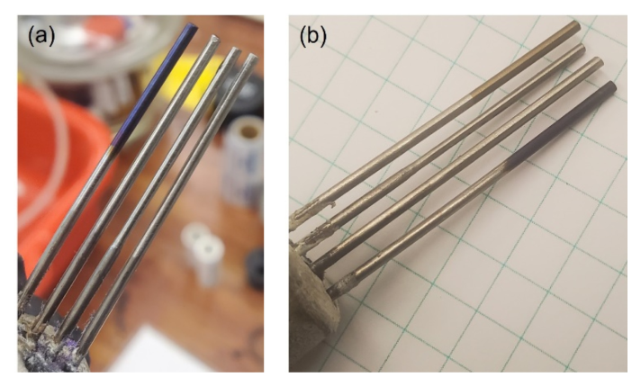 When aged in air, as shown in Figure 5.a, the sample formed an oxide layer on the surface but did not seem to heavily oxidize