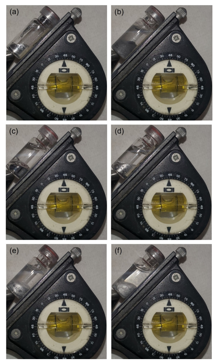 except when stored in sulfuric acid with a pH close to 0, as seen in Figure 5.c. This case also showed the highest flowability when the vial was shaken.