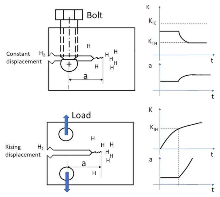 유지시간, 피로 주파수)와 경쟁한다. 예컨대 매우 빠른 변형에서는 수소가 균열선단으로 집적될 시간이 부족해 수소취화 효과가 제한될 수 있는 반면,